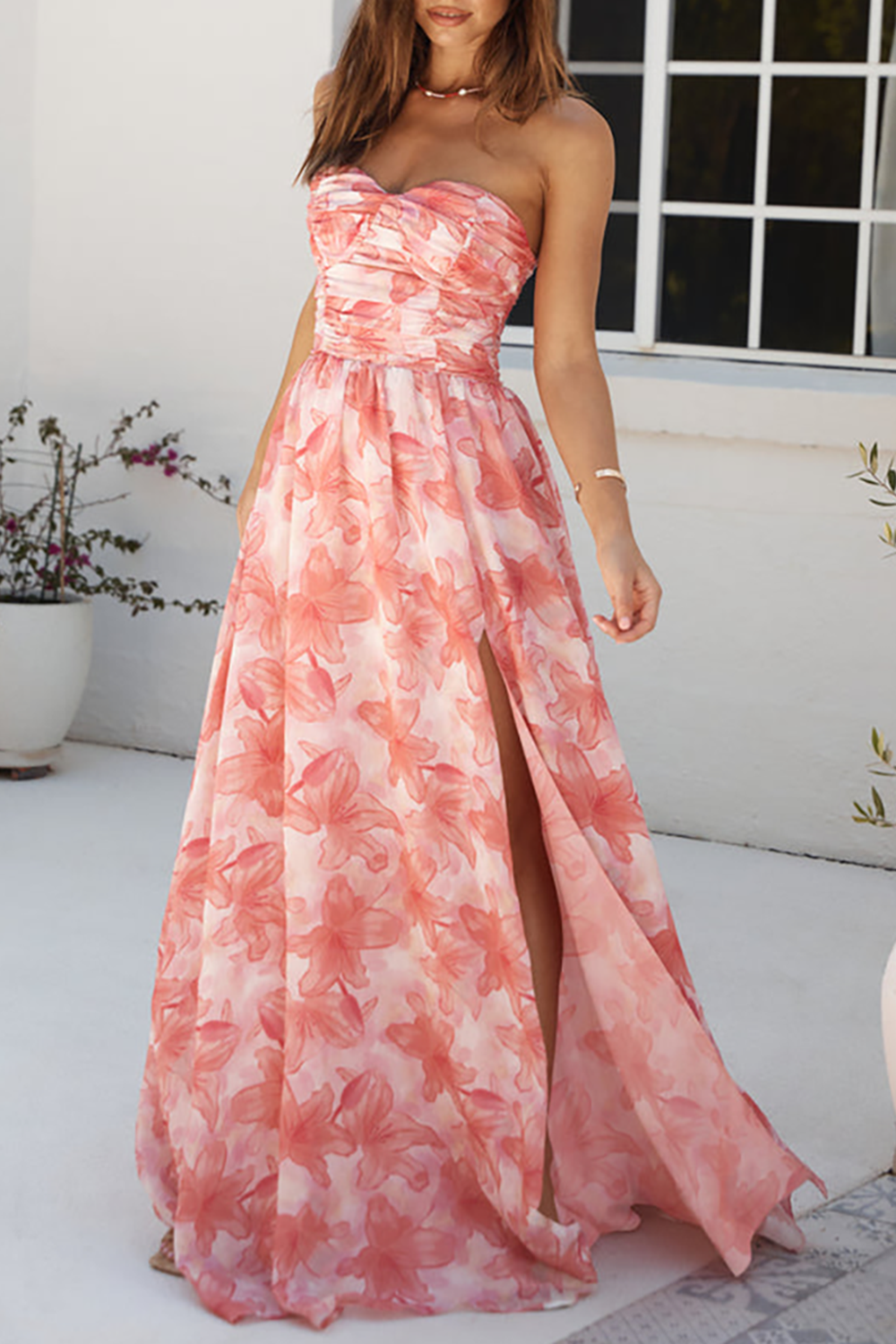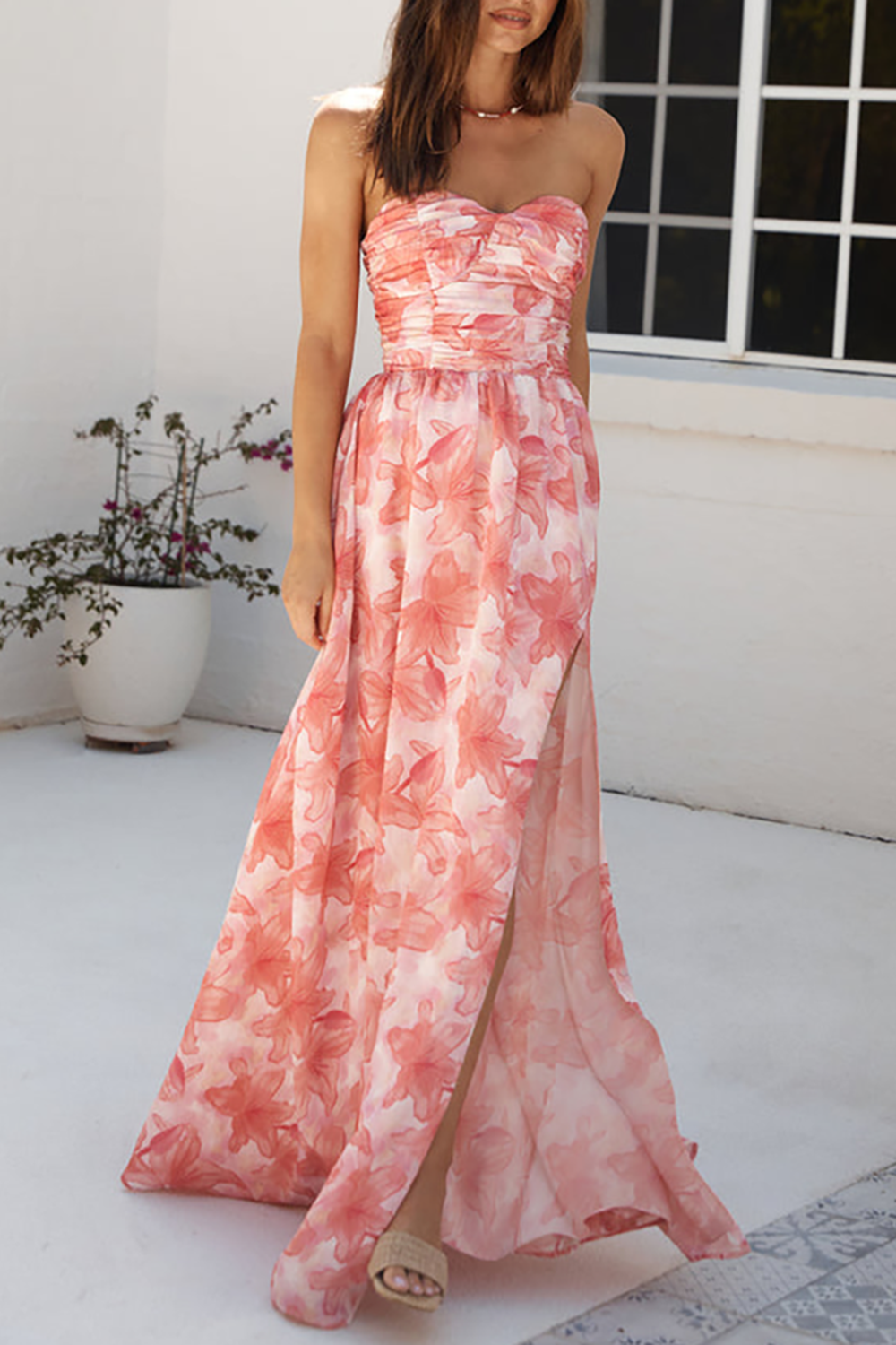 Enter the party in an extravagant style! The Strapless Maxi Dress features a gathered bodice with a gorgeous flowy skirt. Style with heels for a 'fit you'll get compliments in.