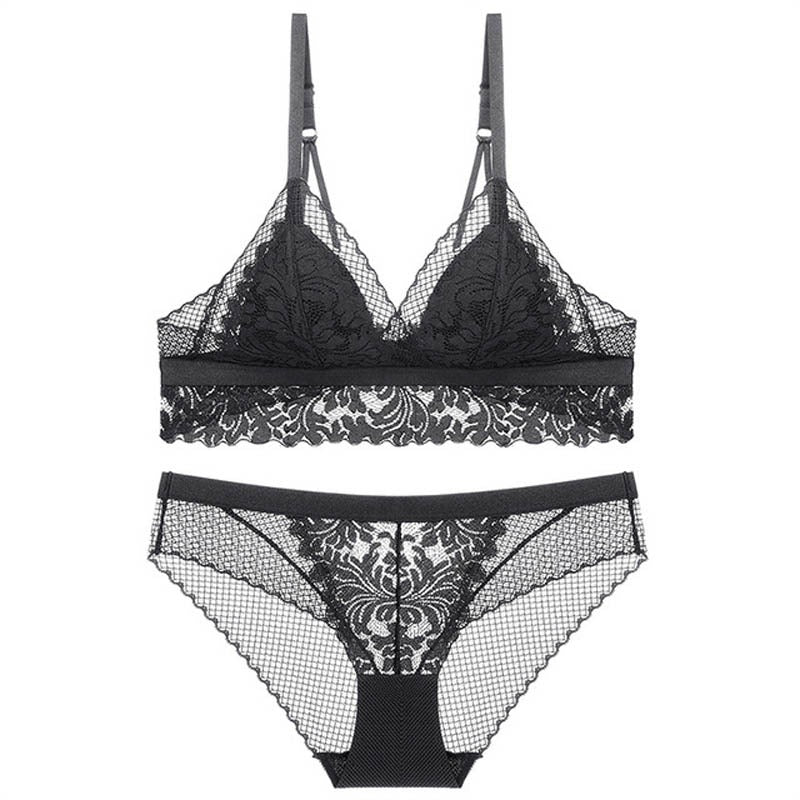 French Flowers Embroidery Lace Brassiere Set is made up of polyester and entirely has lace on the bra as well as briefs. It has a back closure with two hooks and eyes. along with an adjustable strap making it a perfect fit for any size or shape. It can be used for nightwear or sleepwear and for regular wear too.