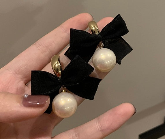 Add a touch of elegance to your look with our Handmade Black Silk Ribbon Bow and Pearl Drop Earrings. These exquisite earrings feature a delicate black silk ribbon bow with a lustrous pearl drop. perfect for any occasion. Lightweight and comfortable to wear. they're a must-have accessory for your collection. Elevate your style with these beautiful earrings today.