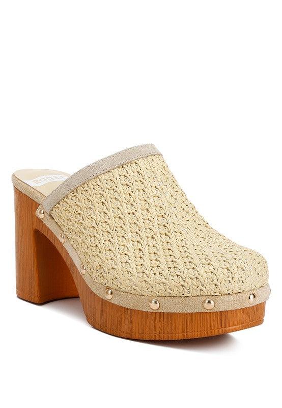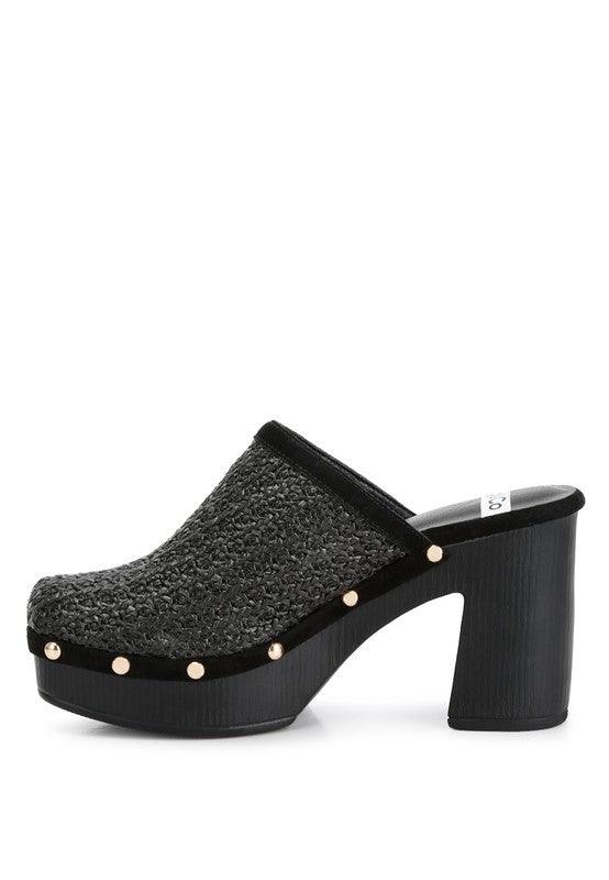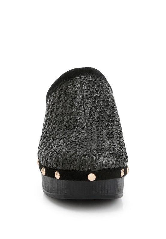Sophisticated elegance and intricate craftsmanship! The raffia clogs are a classy yet rugged pair of shoes with woven detail on the vamp. The metallic studs add a touch of elegance to the design while the light cushion insoles cut strain and offer comfort to the feet.