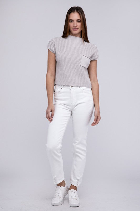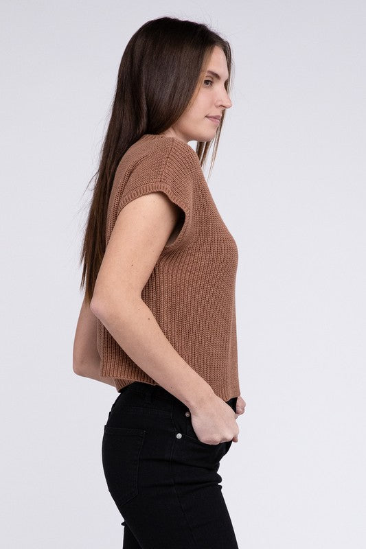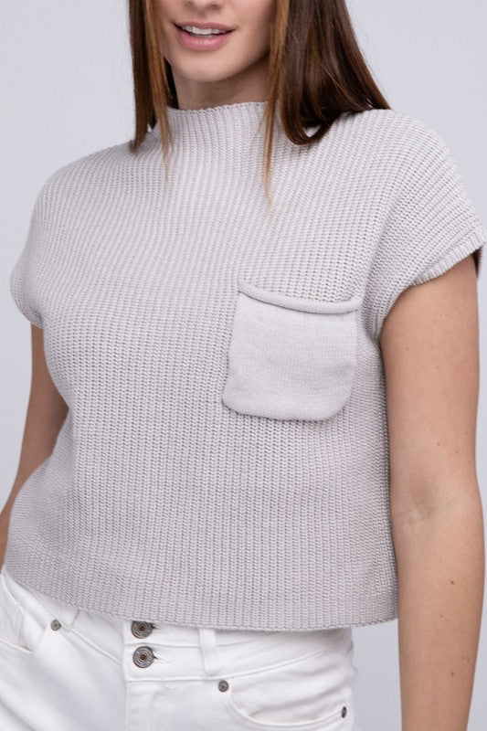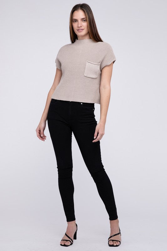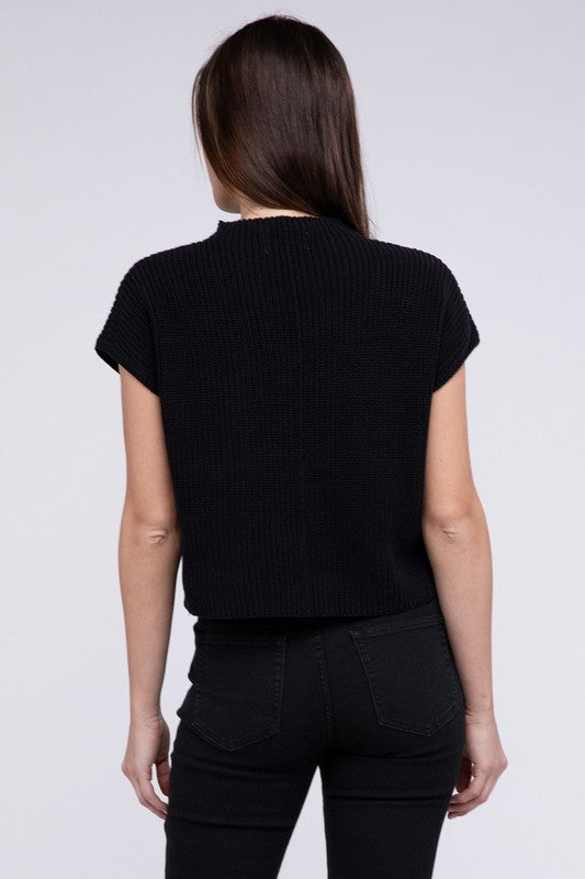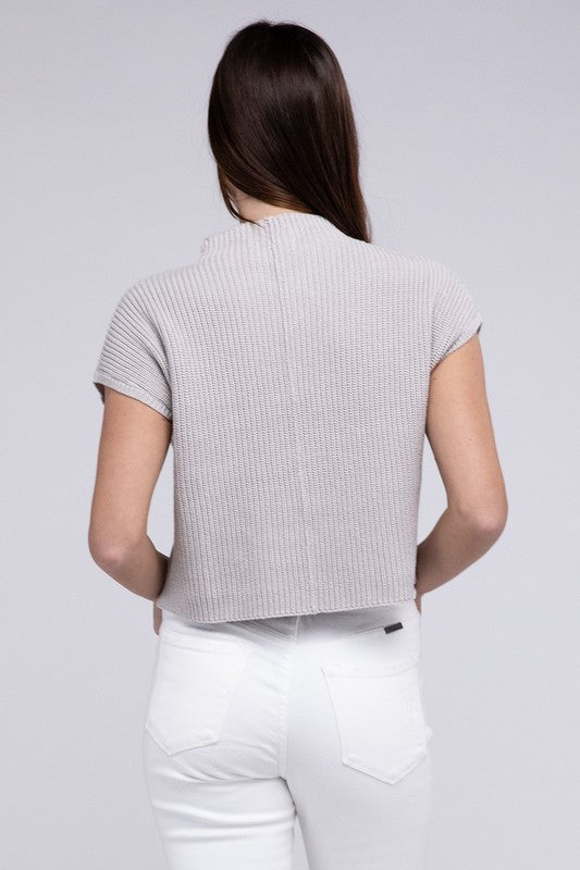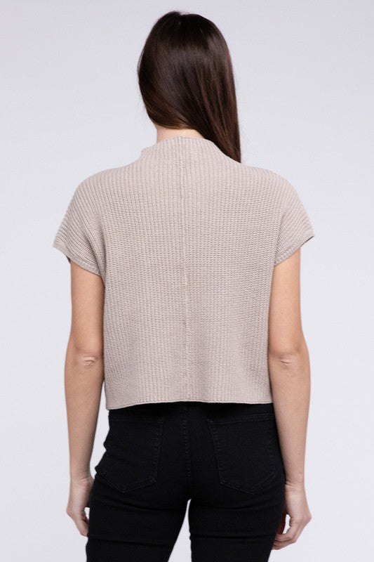 Elevate your winter wardrobe with our Mock Neck Short Sleeve Cropped Sweater - a pinnacle of quality and style. Crafted from the best-quality sweater material. this piece stands out with its low gauge heavyweight construction. The mock neck adds a touch of sophistication. and the dropped shoulder short sleeves provide a contemporary and relaxed vibe.