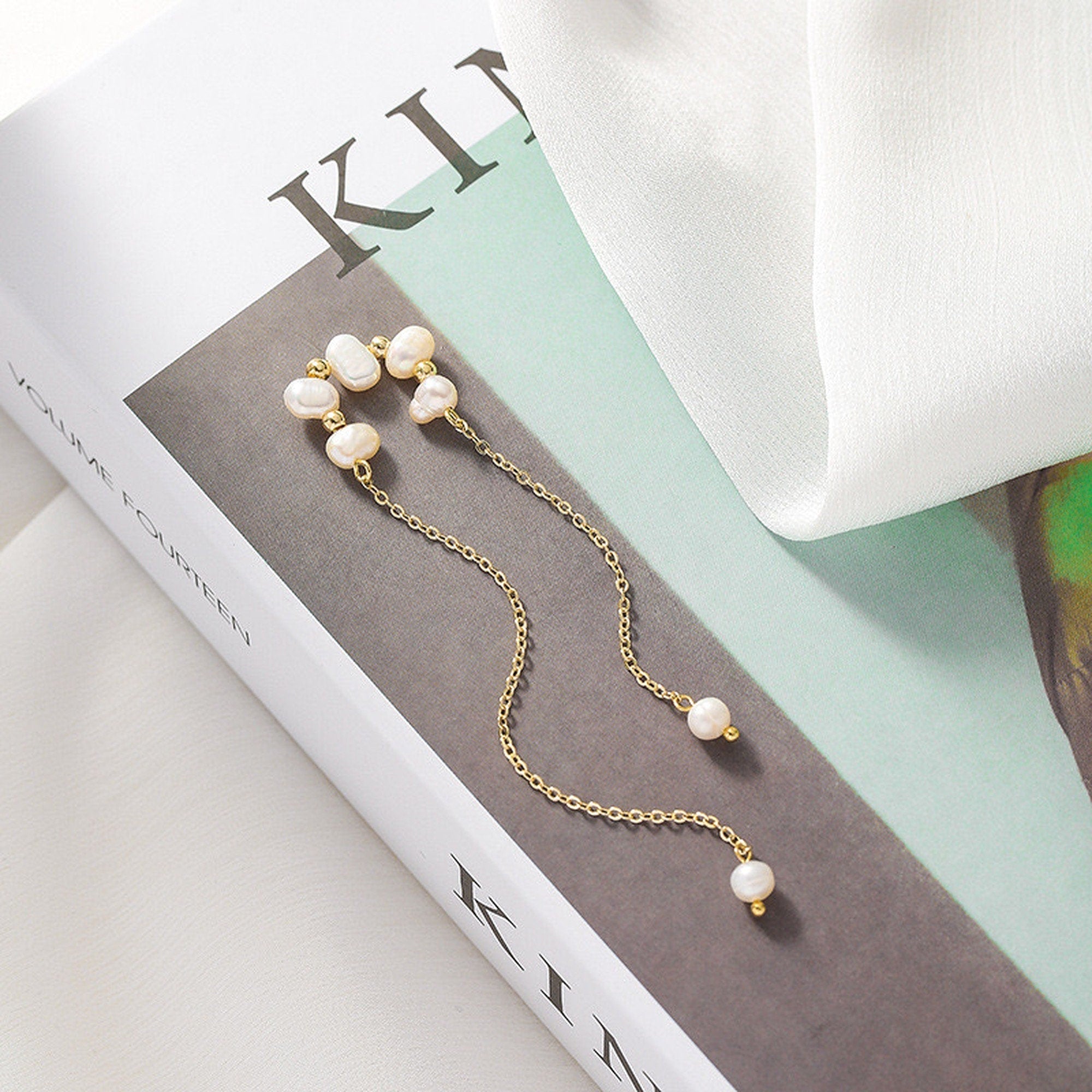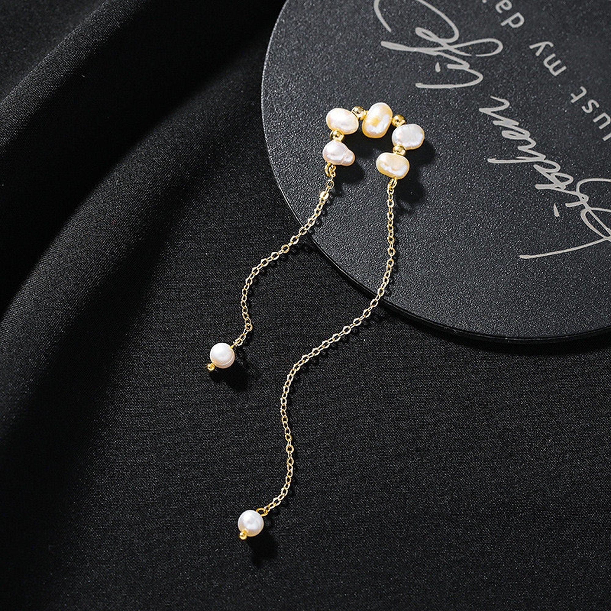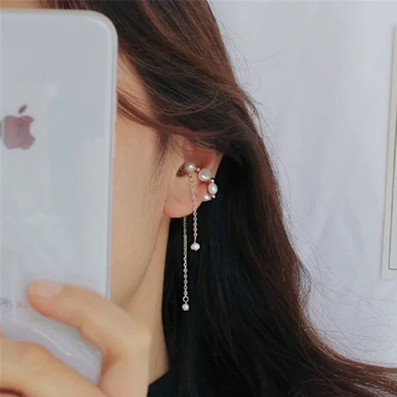 Handmade dainty no piercing conch ear cuff. ear climber. ear crawler. natural freshwater pearl bead cuff. every pearl beads is unique. gold chain dangle earrings. No ear hole necessary. easy to wear and adjust at your preferences. super convenient.dangling beautifully. Hypoallergenic. good for sensitive skins. Perfect as everyday jewelry. also looks gorgeous as party/bridal bridesmaid/wedding accessories!