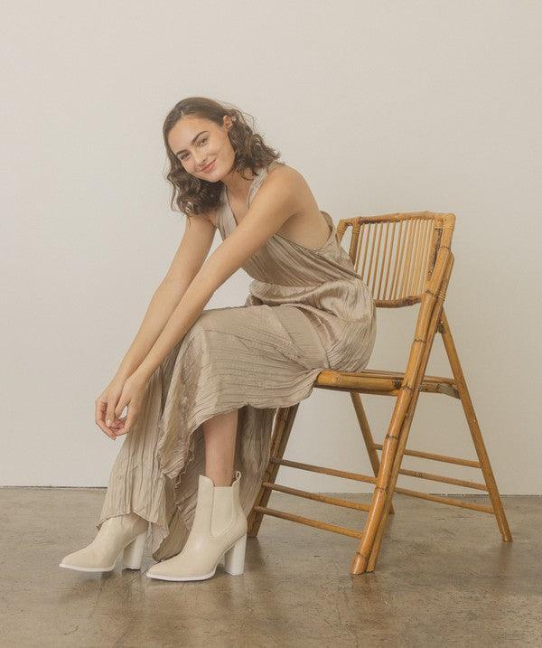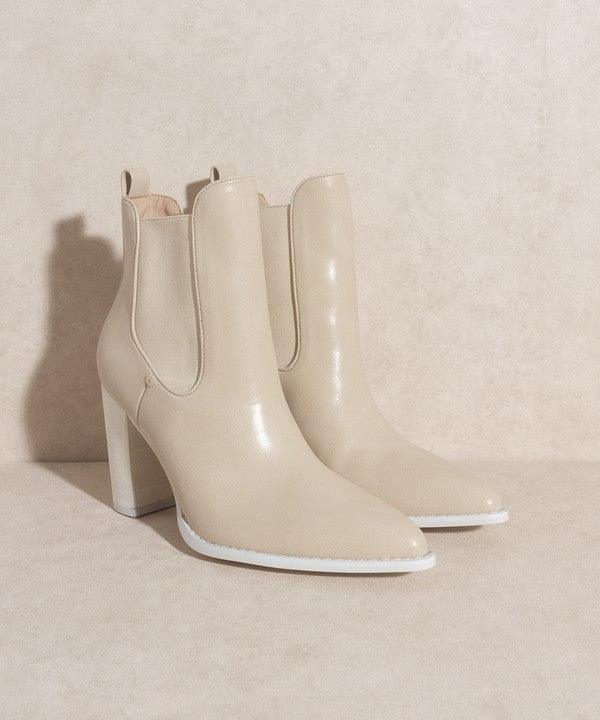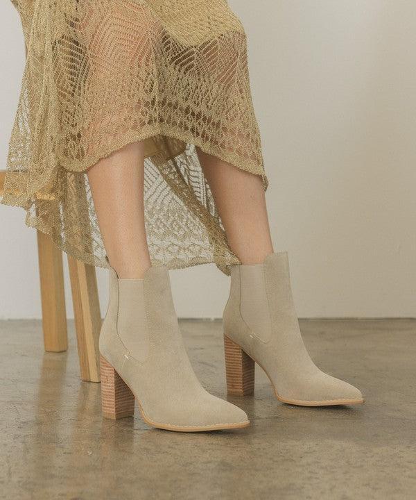 Simply elevated with a stacked heel and a pointed-toe shape