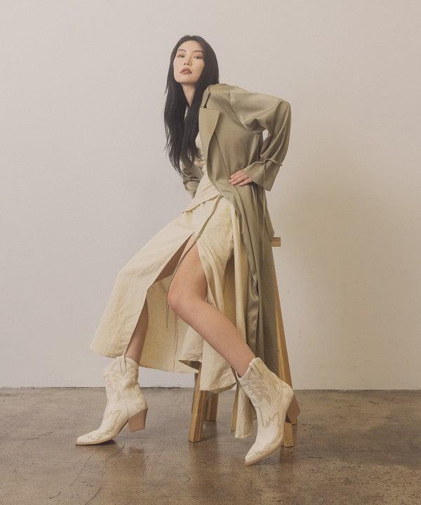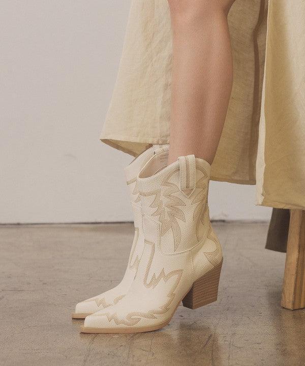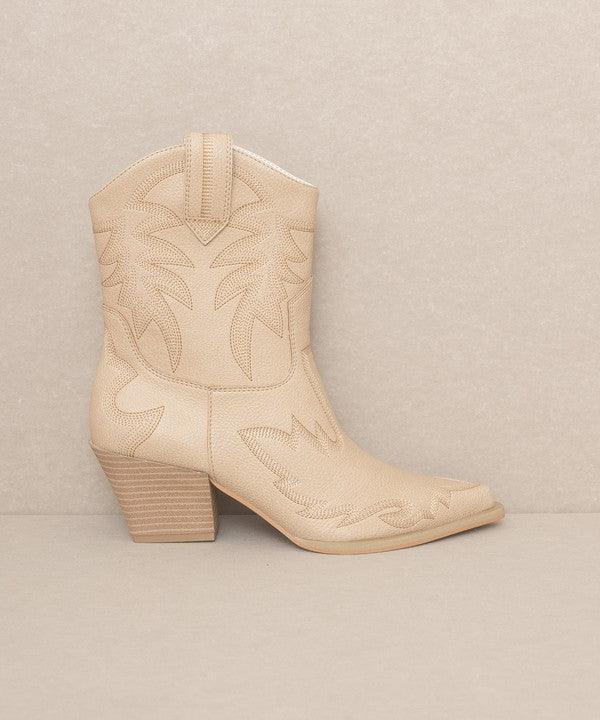 Southwestern flair covers this cowboy boot in a gorgeous stitch pattern with thread toned to match.