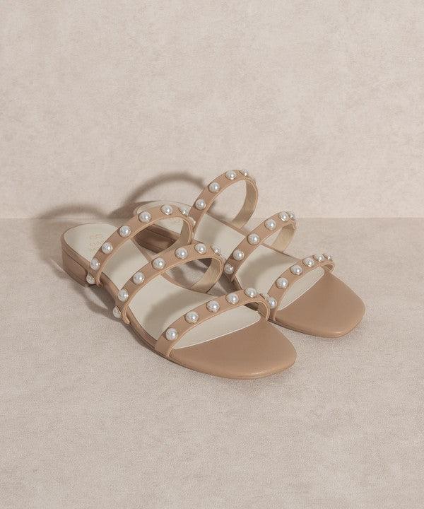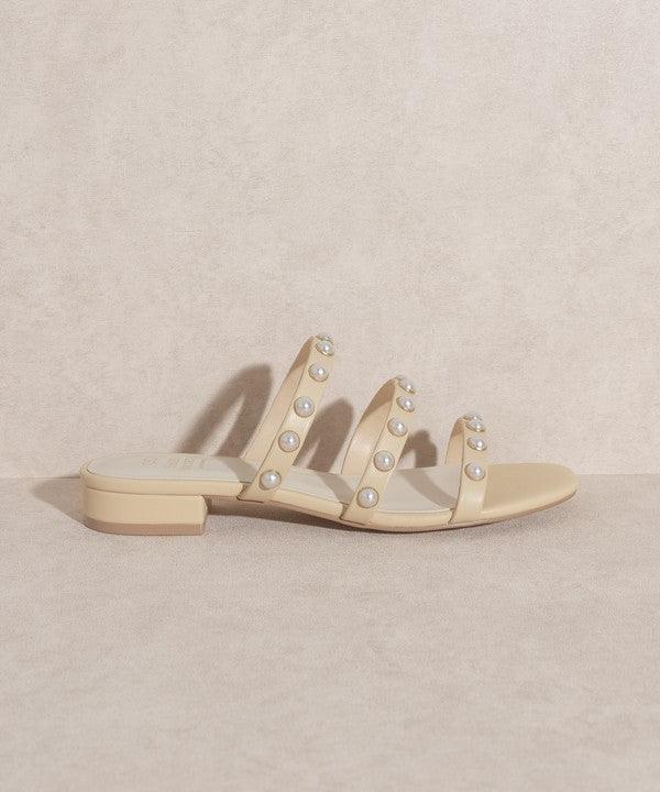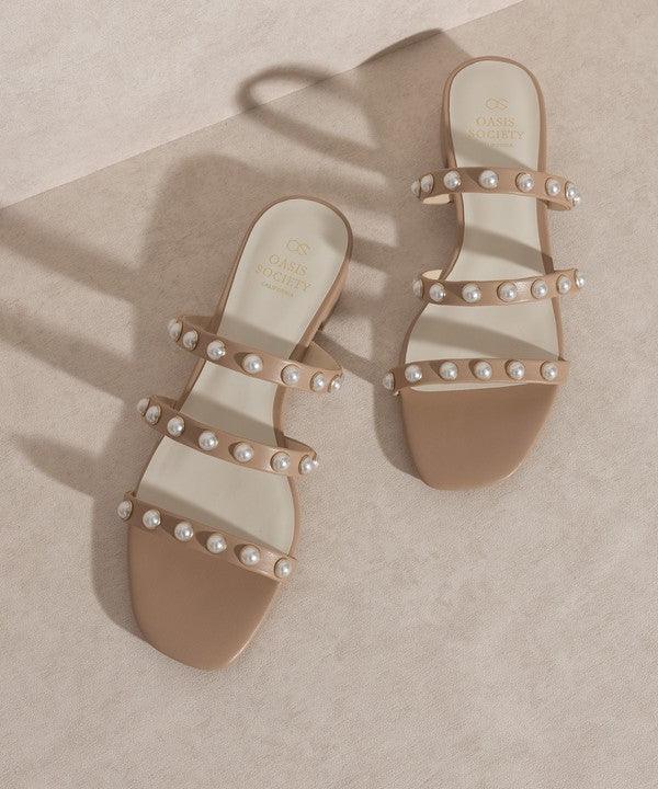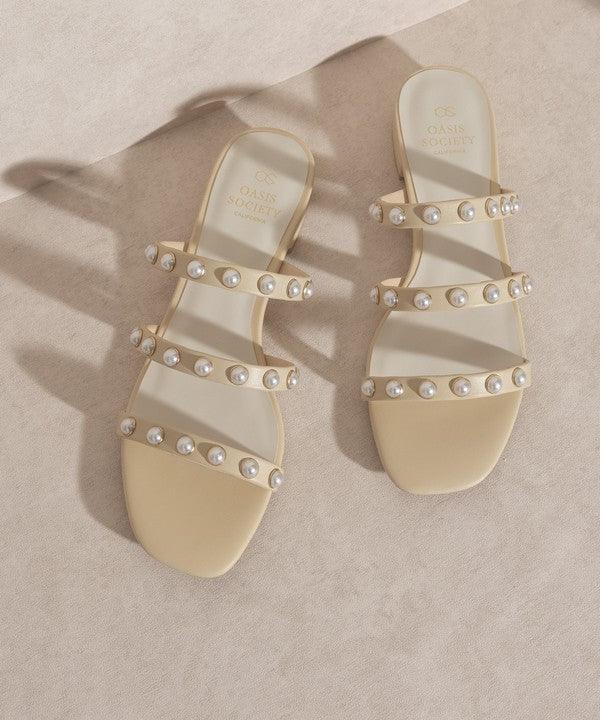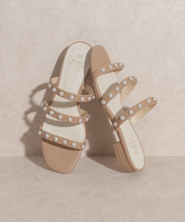 The OASIS SOCIETY Valerie Pearl Flat Sandals are the perfect choice for adding a touch of femininity and elegance to your summer footwear collection. With delicate pearl beading embellishing the straps. these sandals offer a stylish and chic look that's ideal for warm-weather occasions. Whether you're strolling along the beach. attending a summer wedding. or simply enjoying a day out in the sun. these sandals will elevate your outfit and make a statement.