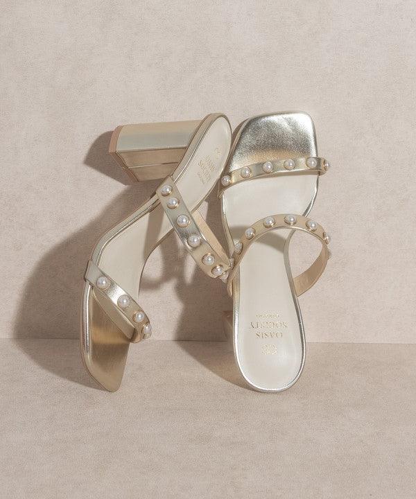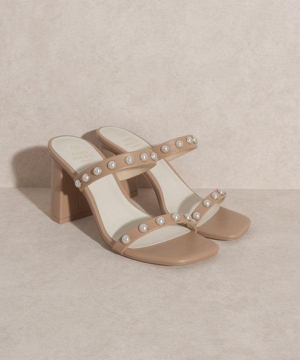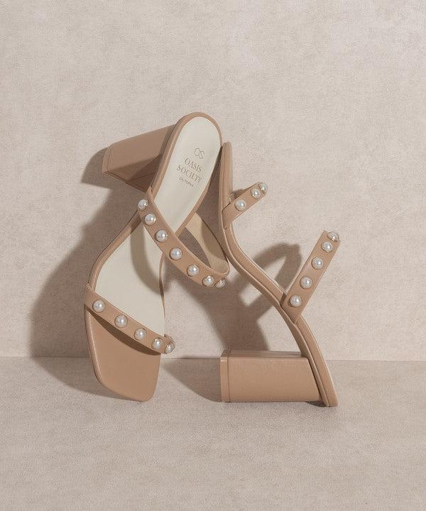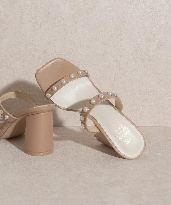 Introducing the OASIS SOCIETY Victoria - Pearl Strap Heel! Whether you're dressing up or down. this stylish slip-on shoe is the perfect minimalist addition to any outfit. Comfortable for all-day wear. it boasts a versatile 3-inch heel and a 0.25-inch front platform. With a sole that measures 5.25 inches at the bottom. you'll feel confident and chic wherever you go.