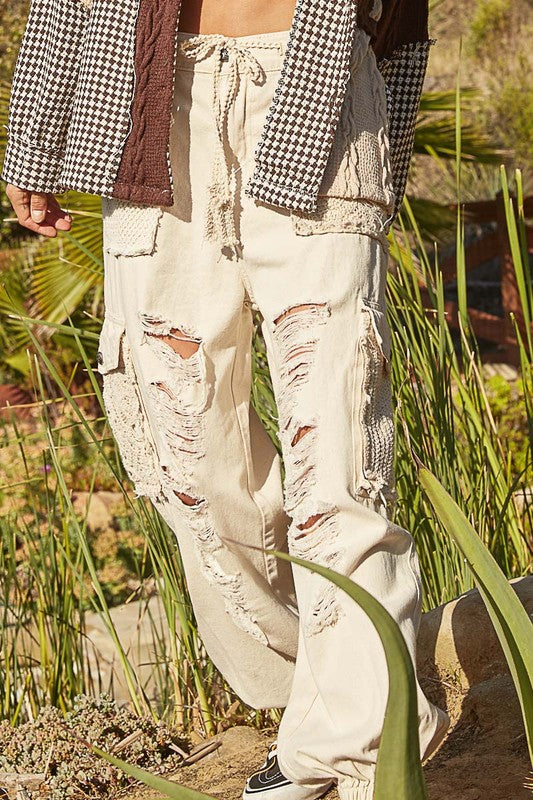 These crochet patch distressed washed jeans feature a unique combination of crochet detailing and distressed elements. adding a stylish and eclectic touch to your wardrobe. The crochet patches provide a delicate and feminine contrast to the rugged distressed areas. creating a trendy and bohemian look. These jeans are versatile and can be dressed up with a blouse and heels or dressed down with a casual t-shirt and sneakers. making them a versatile and on-trend addition to your closet. Perfect for adding a touch of individuality and personality to your everyday outfits with their blend of crochet charm and distressed appeal.