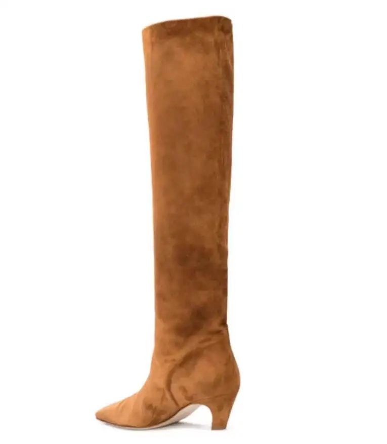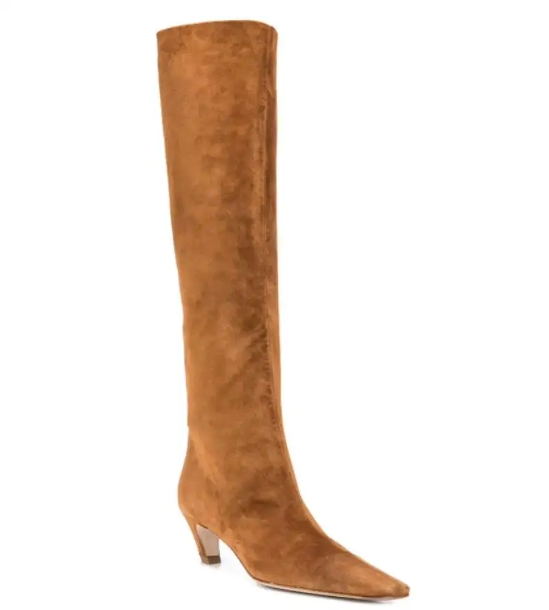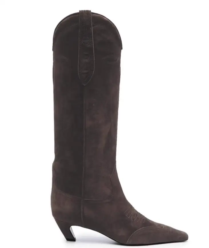 Ravryy Embroidered Suede and Sheepskin Cowboy Boots With Kitten Heel And Square Toe