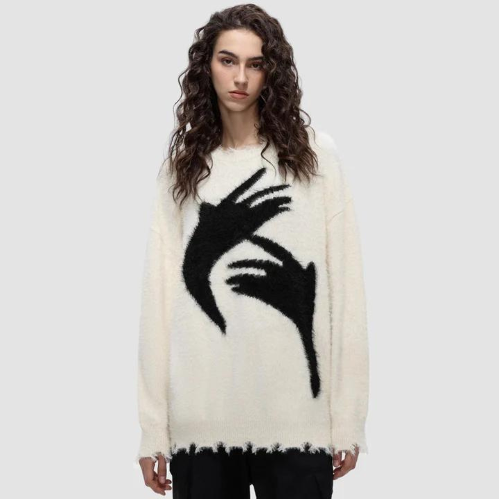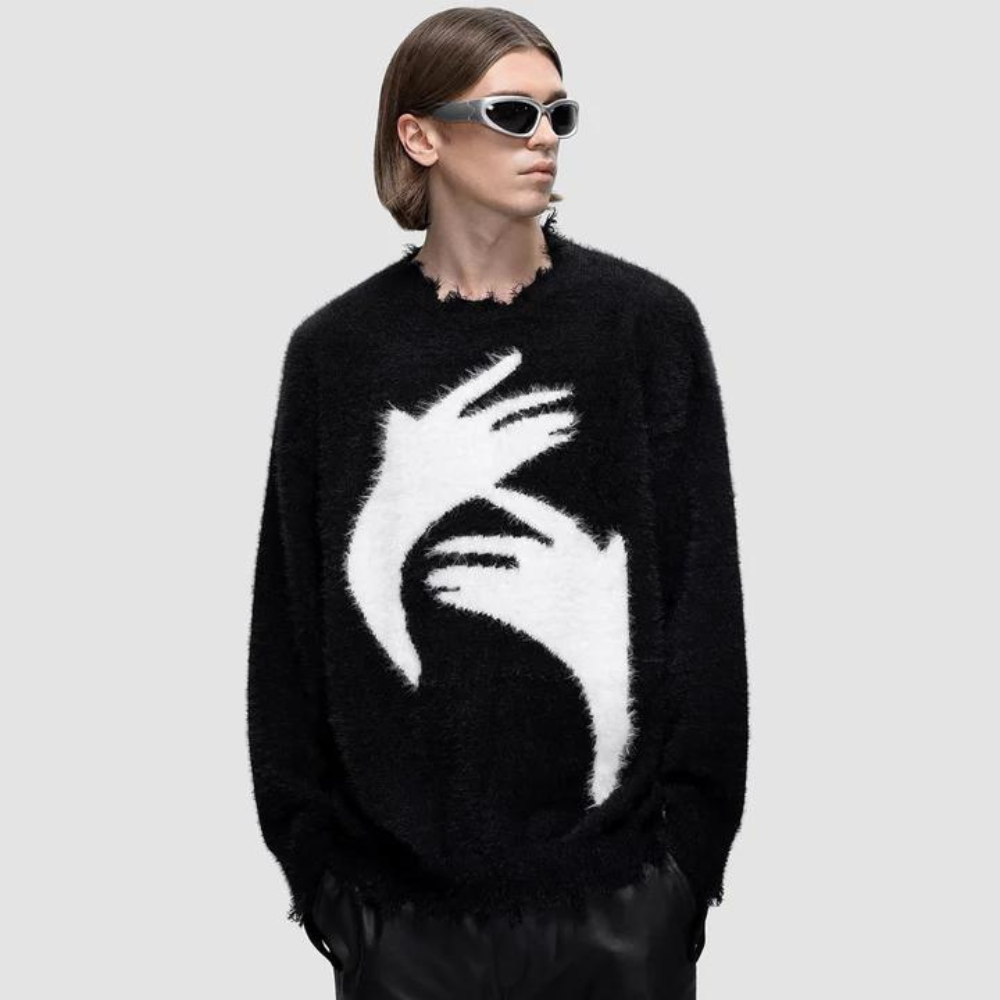 Exude confidence and timeless style with this Retro Abstract Palm Sweater. Crafted from a premium cotton blend for superior comfort and ethereal elegance. the abstract palm pattern adds a touch of classic yet modern sophistication to any outfit. A perfect addition to your luxury wardrobe.