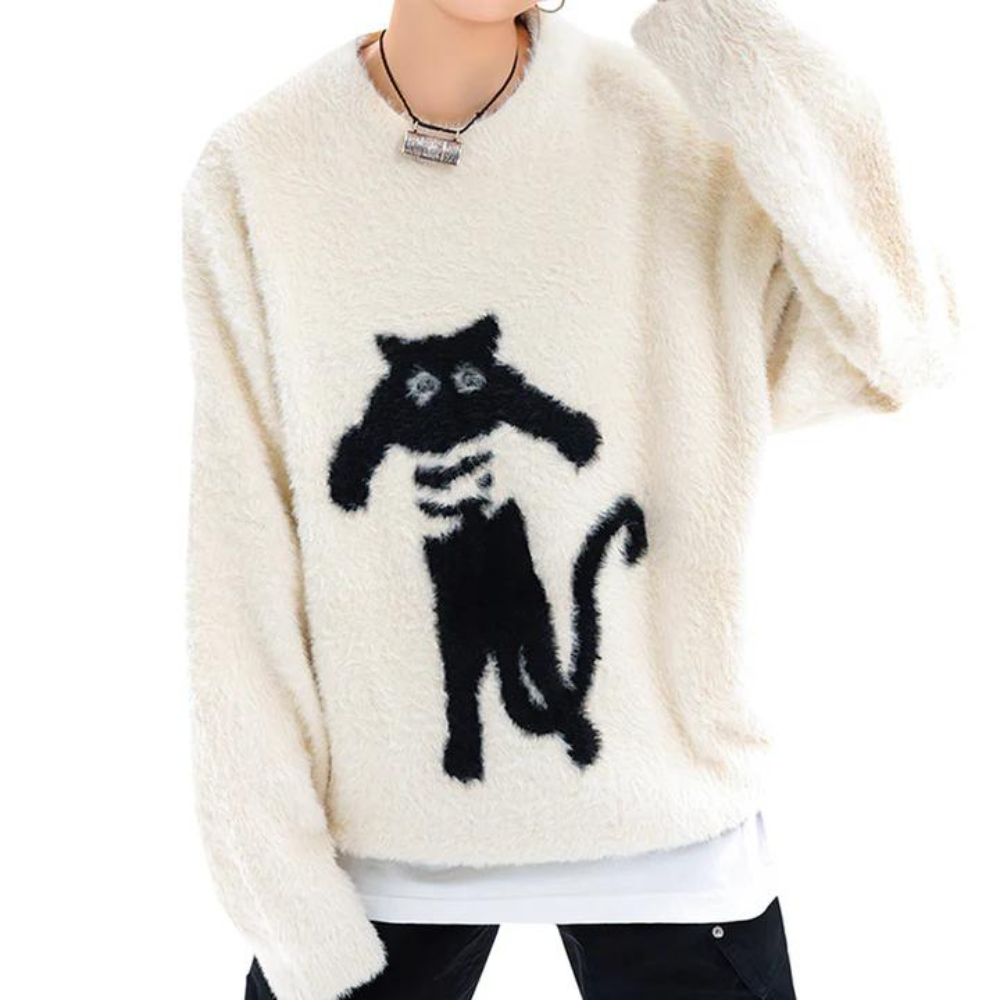 Be the envy of your friends with this exquisite Abstract Caught Kitten Sweater. Crafted from rich cotton blend. this timelessly stylish sweater offers a luxuriously comfortable fit. with bold geometric pattern embroidery and a distinctive silhouette. Perfect for any formal or casual occasion. this luxurious piece is guaranteed to add a touch of elegance and sophistication to any wardrobe.