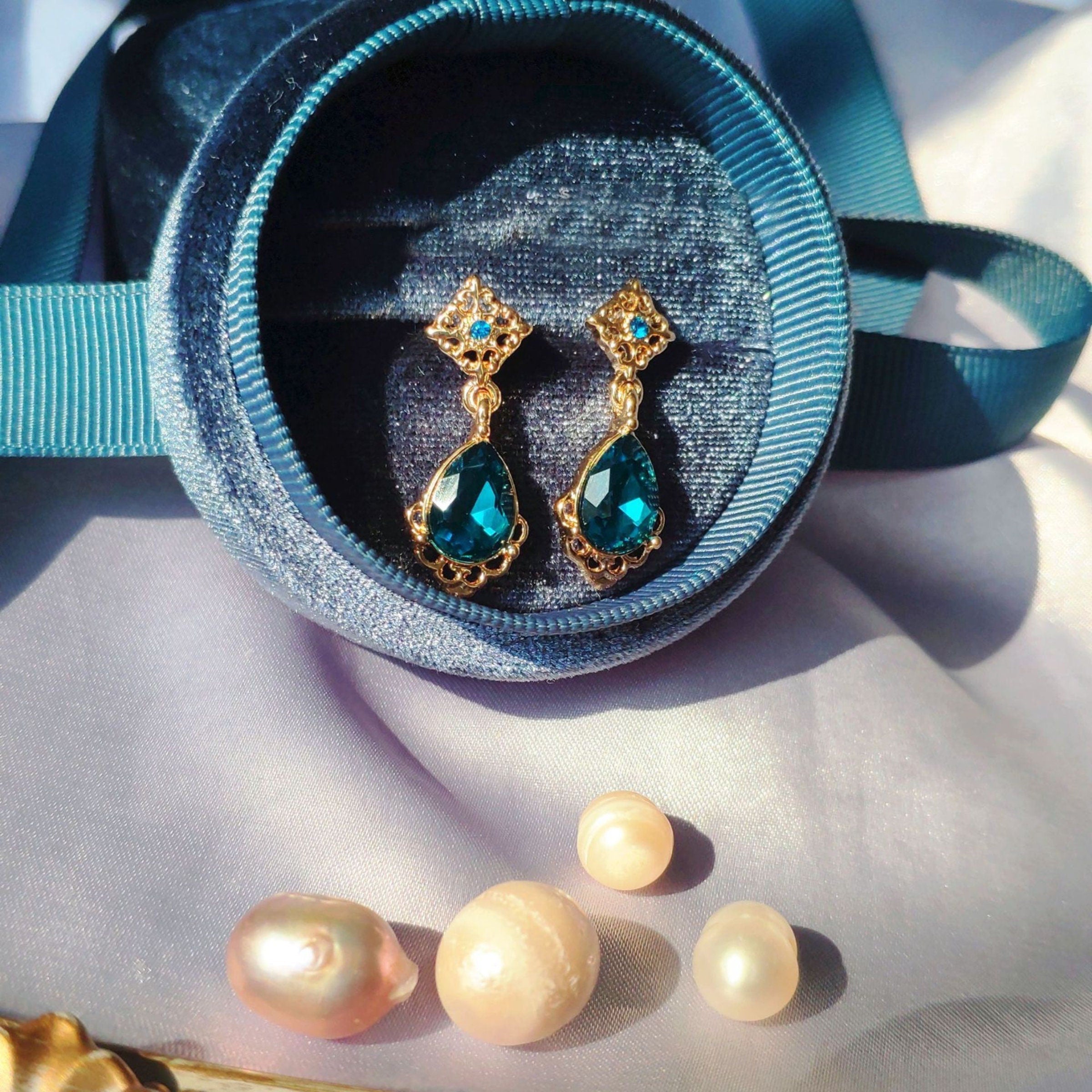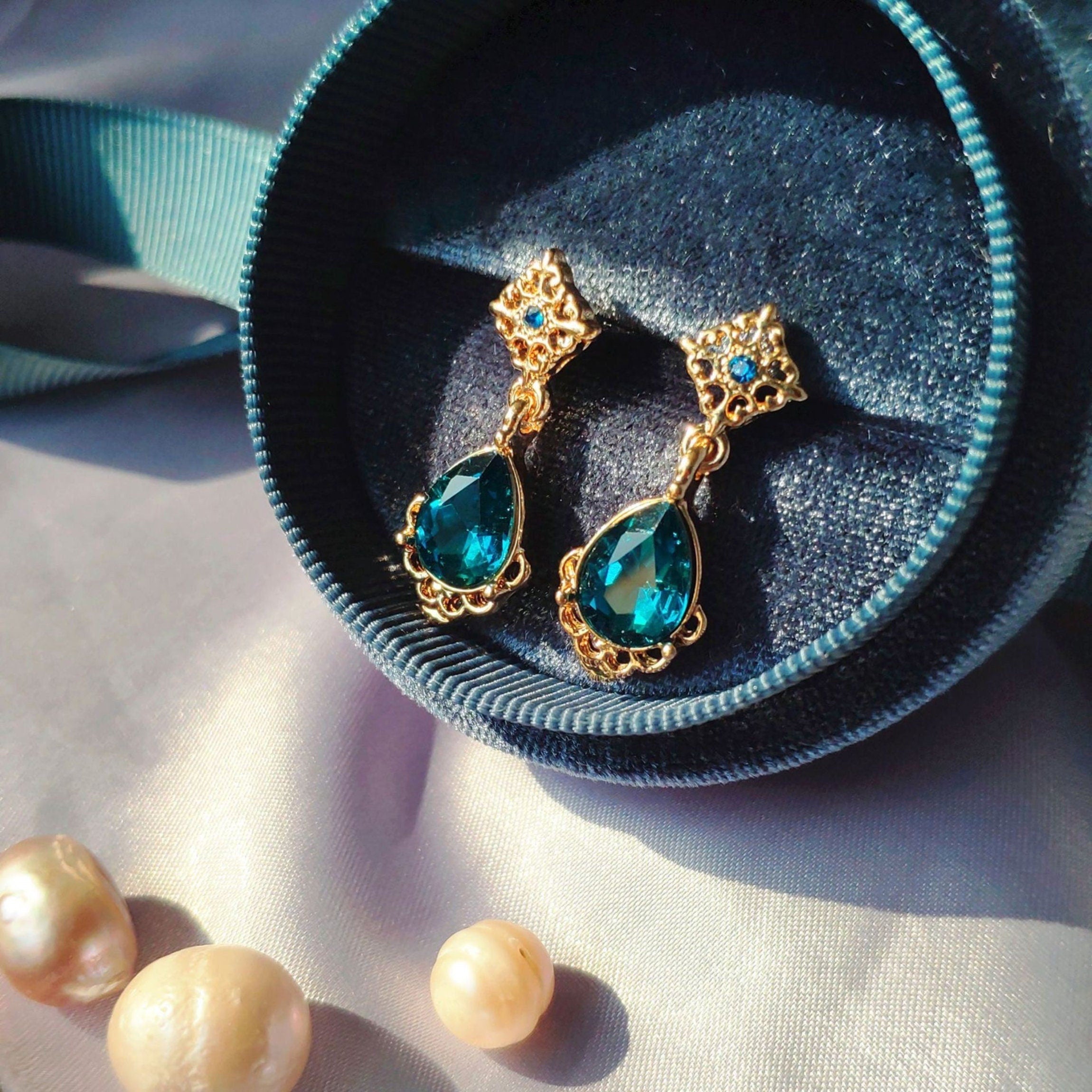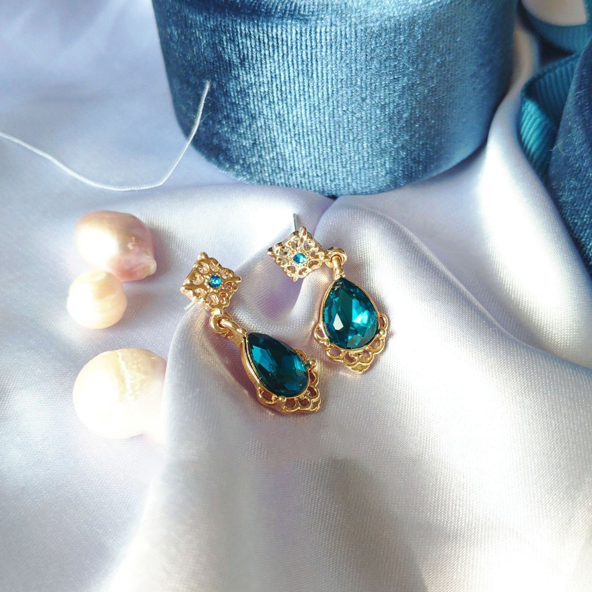 Vintage beautiful sparkling piece. teardrop blue sapphire gold lace minimalism dangle drop earrings. Delicate exquisite elegant earrings. sparkly perfect blue. stunning as wedding bridesmaid bridal accessories. gorgeous for any occasion and outfit.