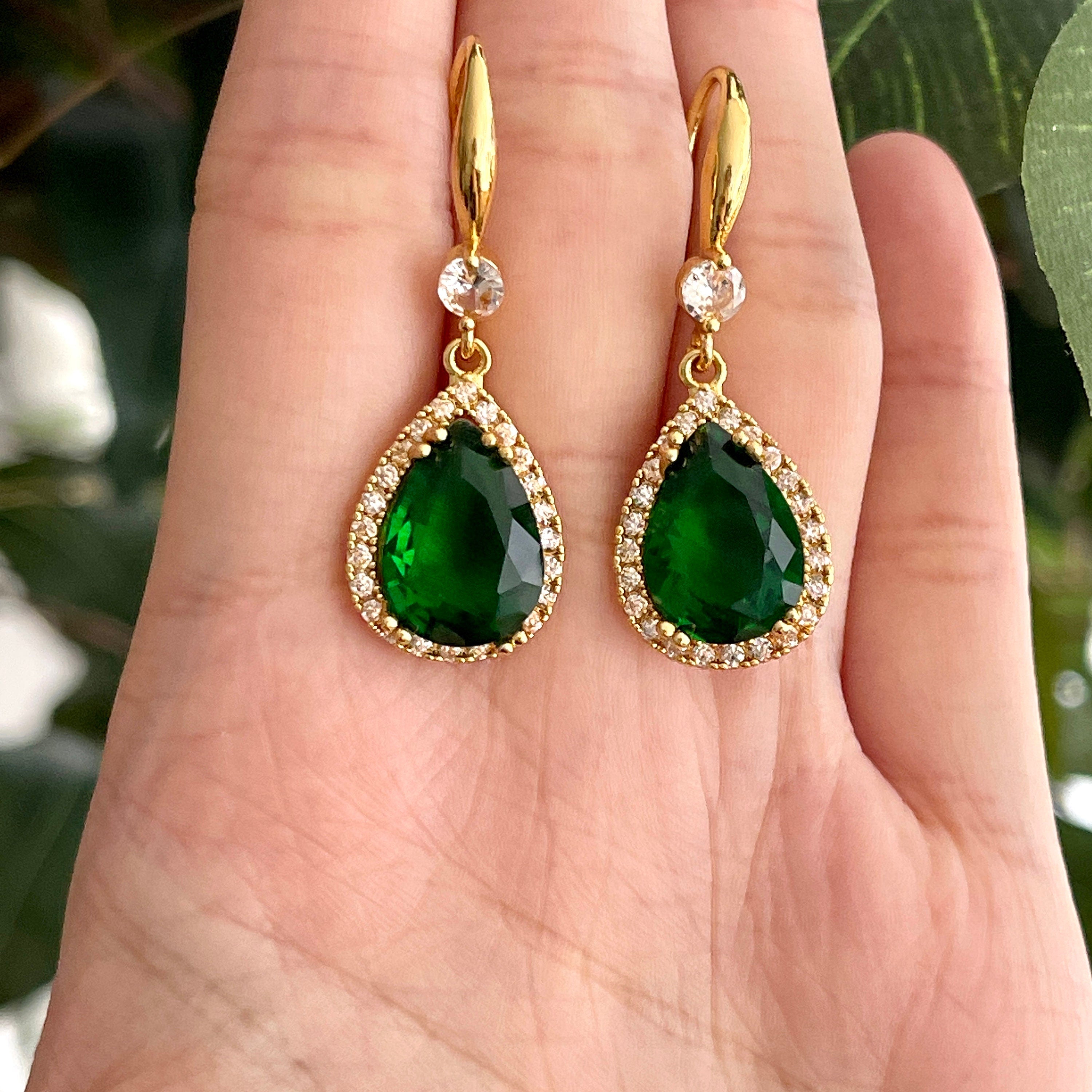 Our emerald teardrop gold earrings are the perfect accessory for any occasion. whether you're dressing up for a formal event/wedding or adding a touch of elegance to your everyday look. The rich green hue of the emerald gemstones is beautifully complemented by the warm. lustrous gold. creating a look that is both luxurious and understated.