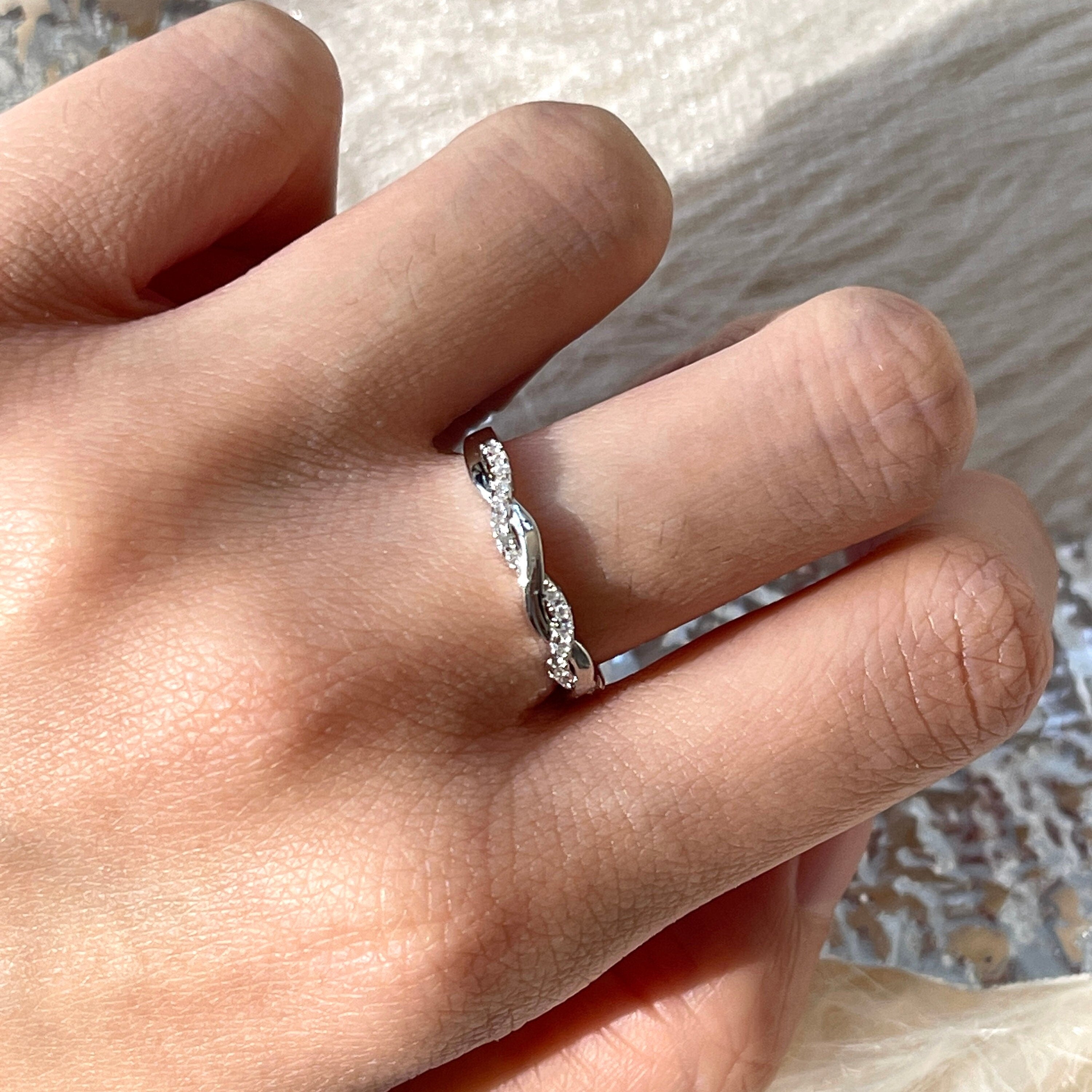 This ring gives elegant. classic and luxurious sparkles. Perfect as promise engagement wedding band. also looks chic as simple everyday stacking ring.