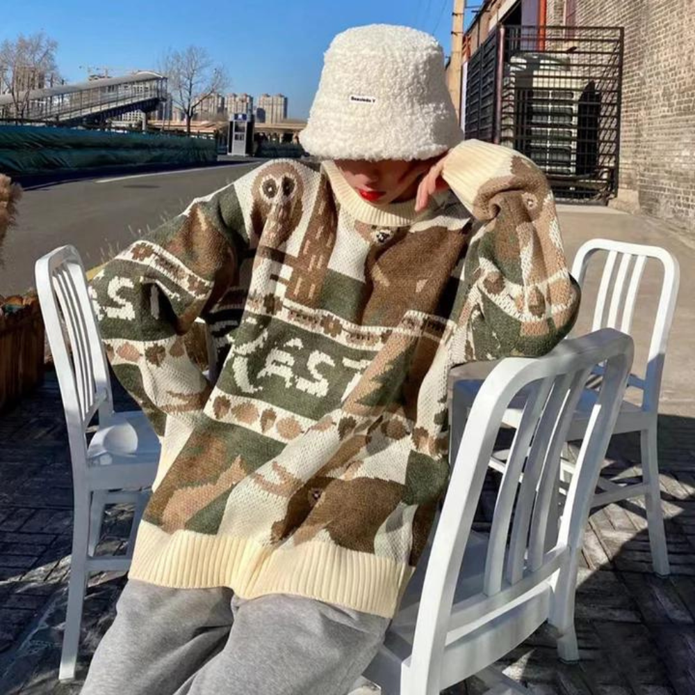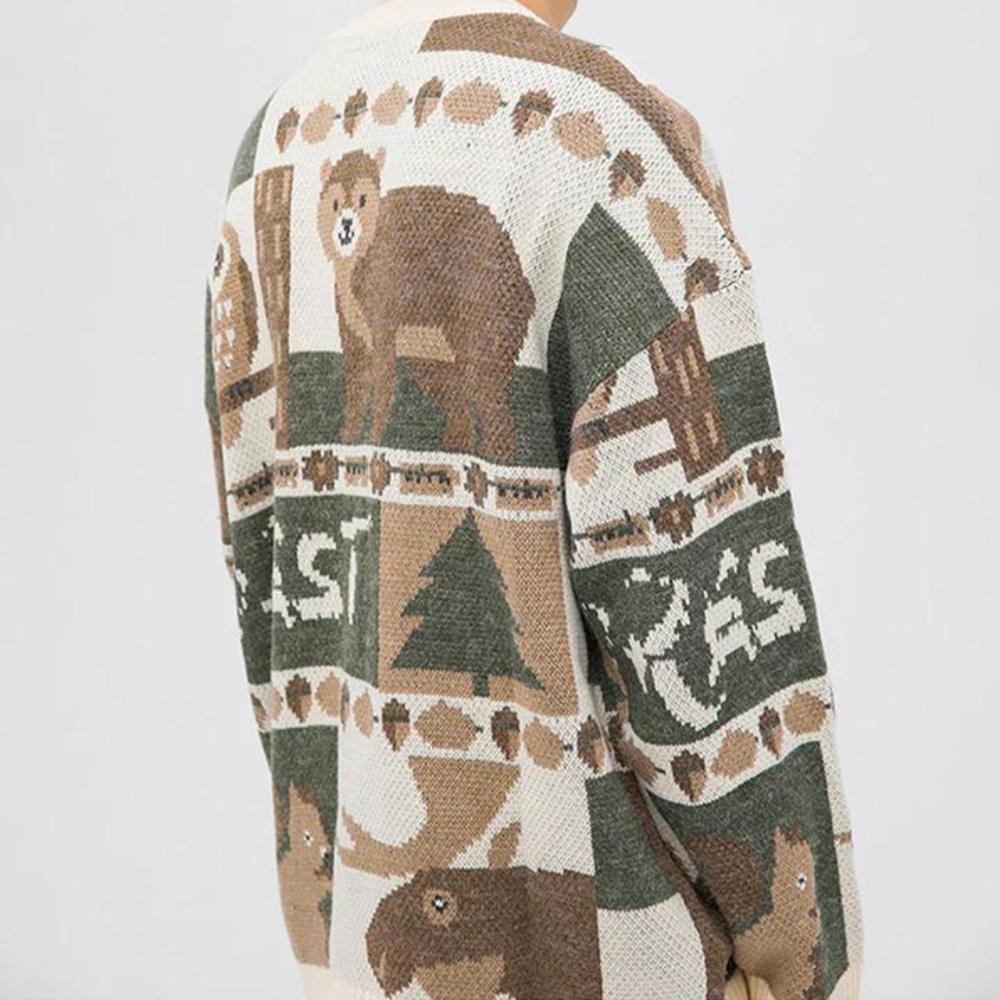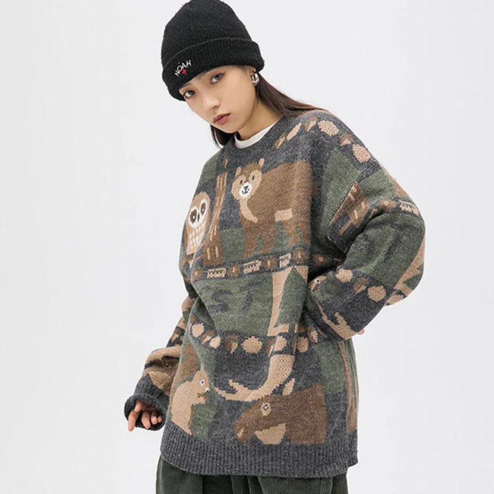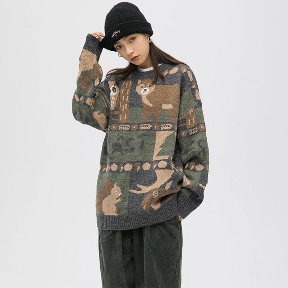 Made from soft. high-quality wool. this sweater features a unique design of a cute bear knitted into the front. With a classic crew neckline and long sleeves. this sweater is perfect for chilly days and can be worn with jeans or leggings for a casual yet stylish look.
