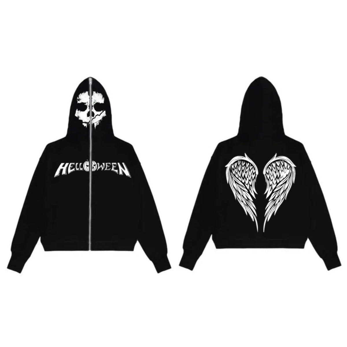 Y2K Retro Rhinestone Skeleton Hoodie Harajuku Gothic Hip Hop Sweatshirts Punk Jackets Streetwear